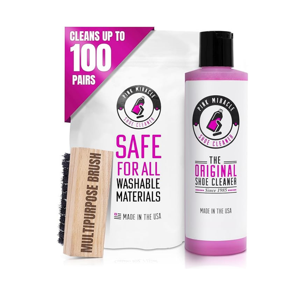 The ORIGINAL Shoe Cleaning System: Pink Miracle Shoe Cleaner has been around since 1985, and the great formula is the number 1 choice for sneakers and shoes. Whether you are a sneaker head collector or simply want to clean your shoes to provide a professional new look.